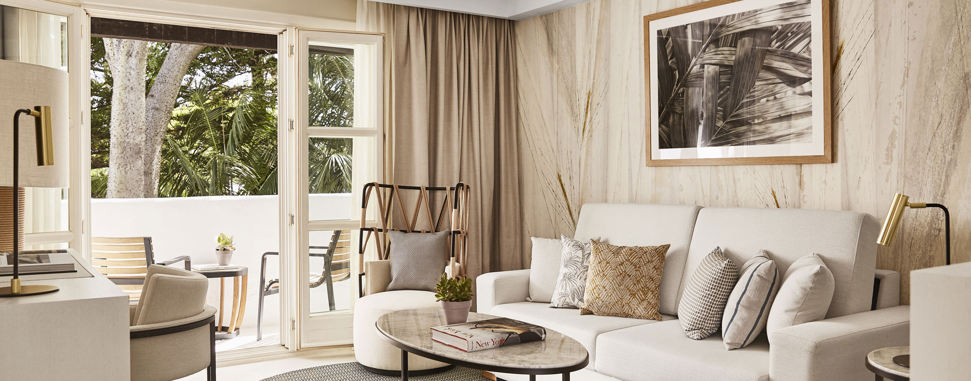 A spacious option for two, and a popular choice for families, these Suites can be connected to Junior Suites for even more room. Inside, simple and elegant décor sets a modern tone. Enjoy views across the botanical gardens from your terrace, or lay back on a lounger and let scents of rosemary and wisteria wash over you.