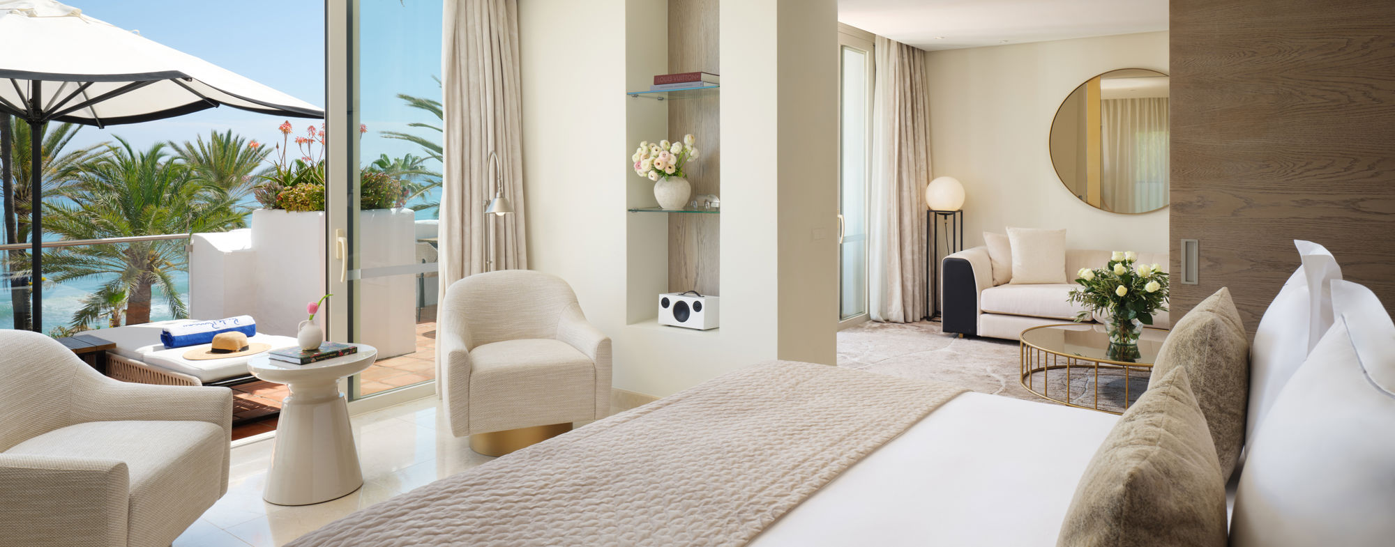 Views to the Mediterranean Sea. Two large bedrooms and two bathrooms, ideal for family holidays. Breathe in the sea air from the private terrace and be spoiled by the personalised guest services. Its design skilfully blends the authentic feel of Andalucía with a contemporary finish.