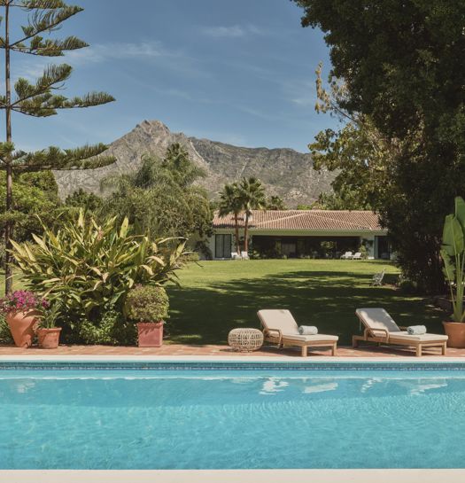 Located in Marbella's prestigious Golden Mile area, Villa Los Llanos is a seven-bedroom 341m²/3,670ft² sanctuary offering the perfect balance of privacy and resort access. Surrounded by 6,500m² of landscaped gardens, the villa features an 82m² covered terrace, swimming pool, padel court, and views of La Concha mountain. This contemporary villa with vintage charm delivers refined interiors following a complete renovation in 2025.